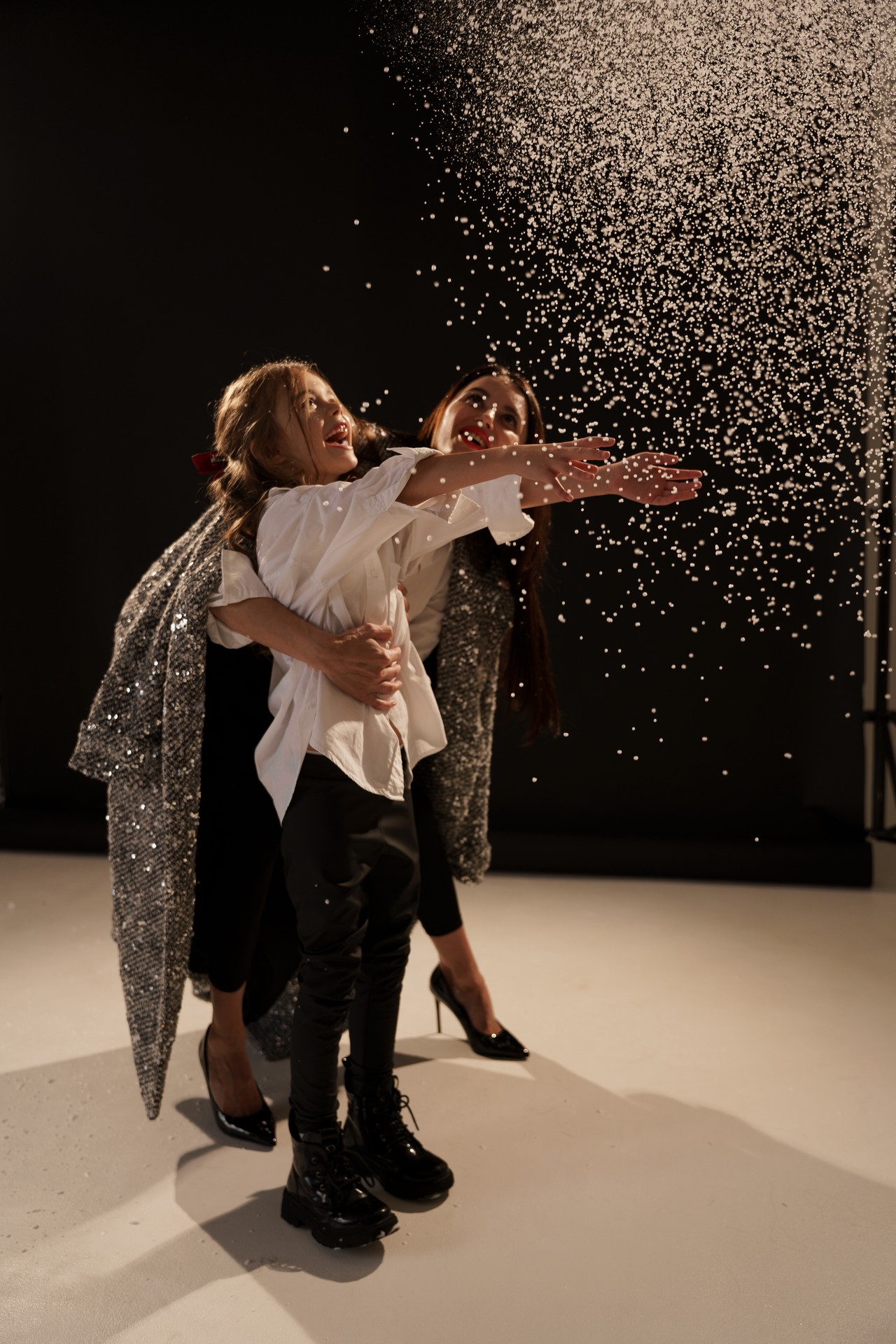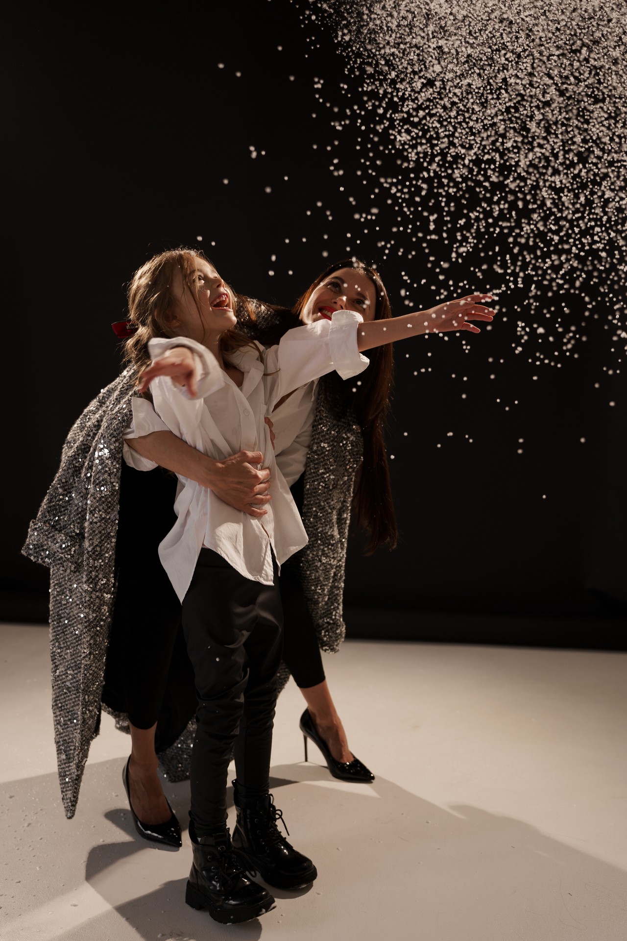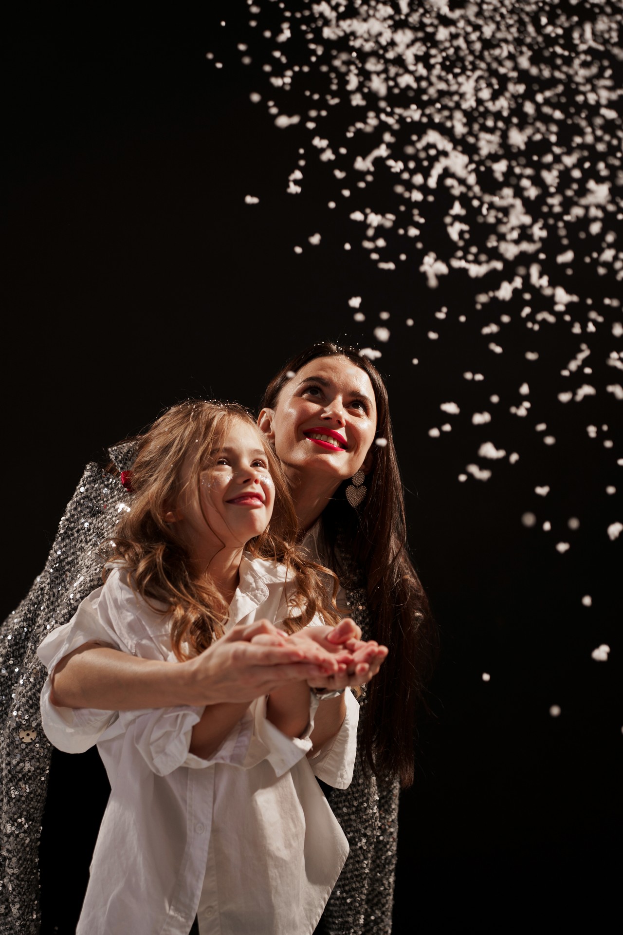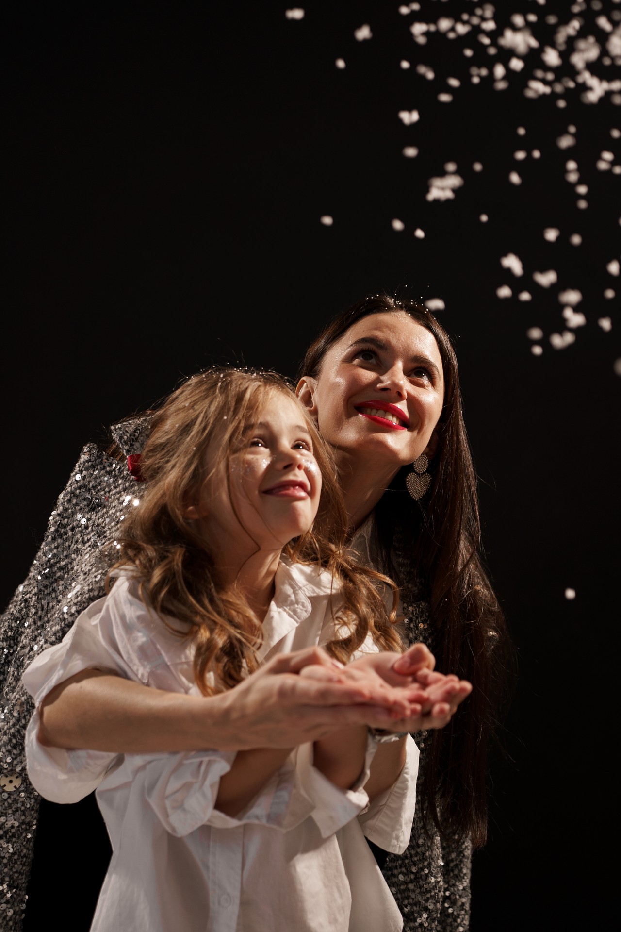 Новогодняя фотосессия мамы и дочки — это момент, наполненный волшебством, когда за кадром остаётся всё лишнее, и остаётся только чистая радость, блеск в глазах и ощущение тепла рядом с самым дорогим человеком. На фоне глубокого черного полотна, под легким пушистым искусственным снегом создаётся настоящая сказка!