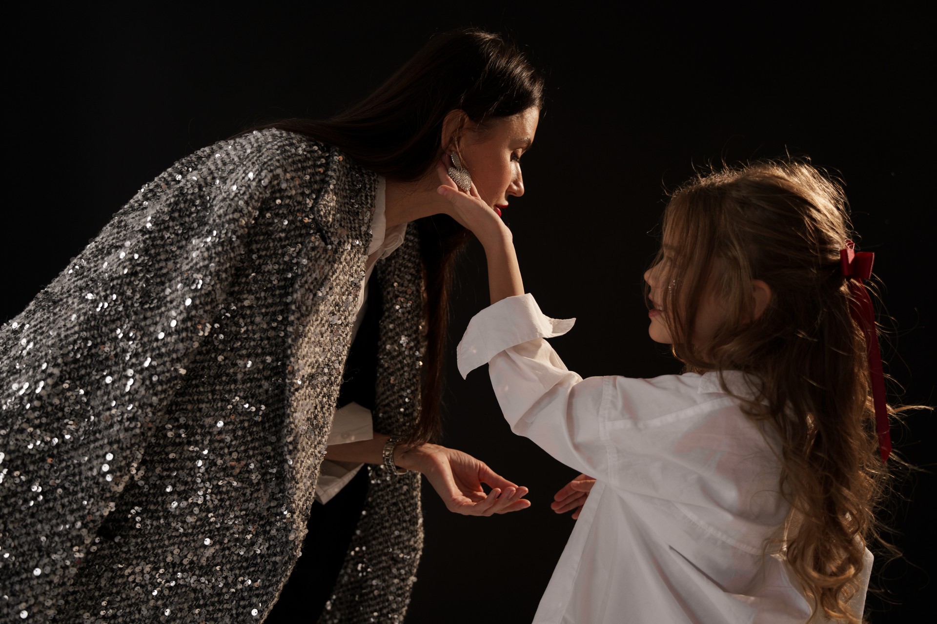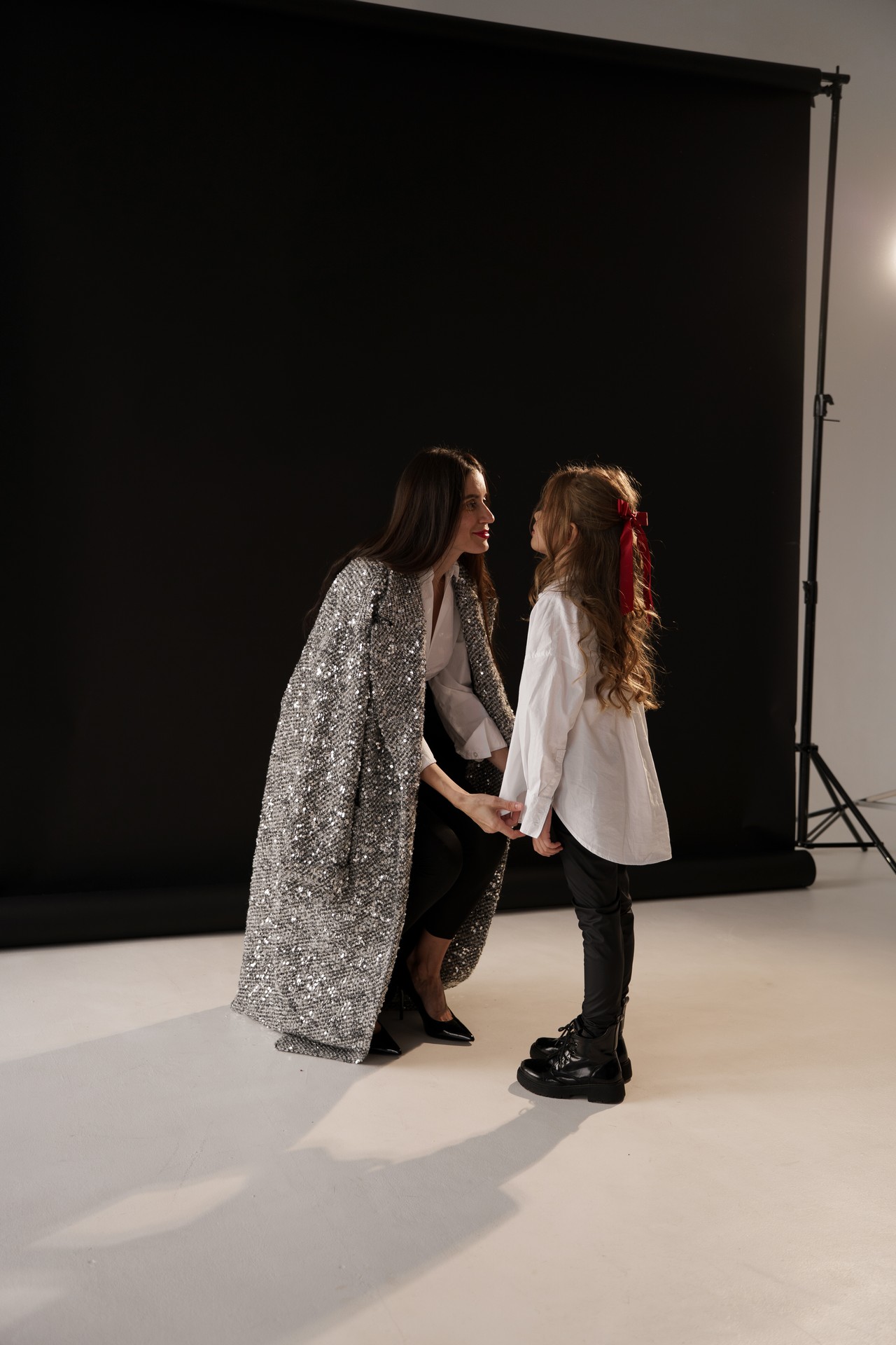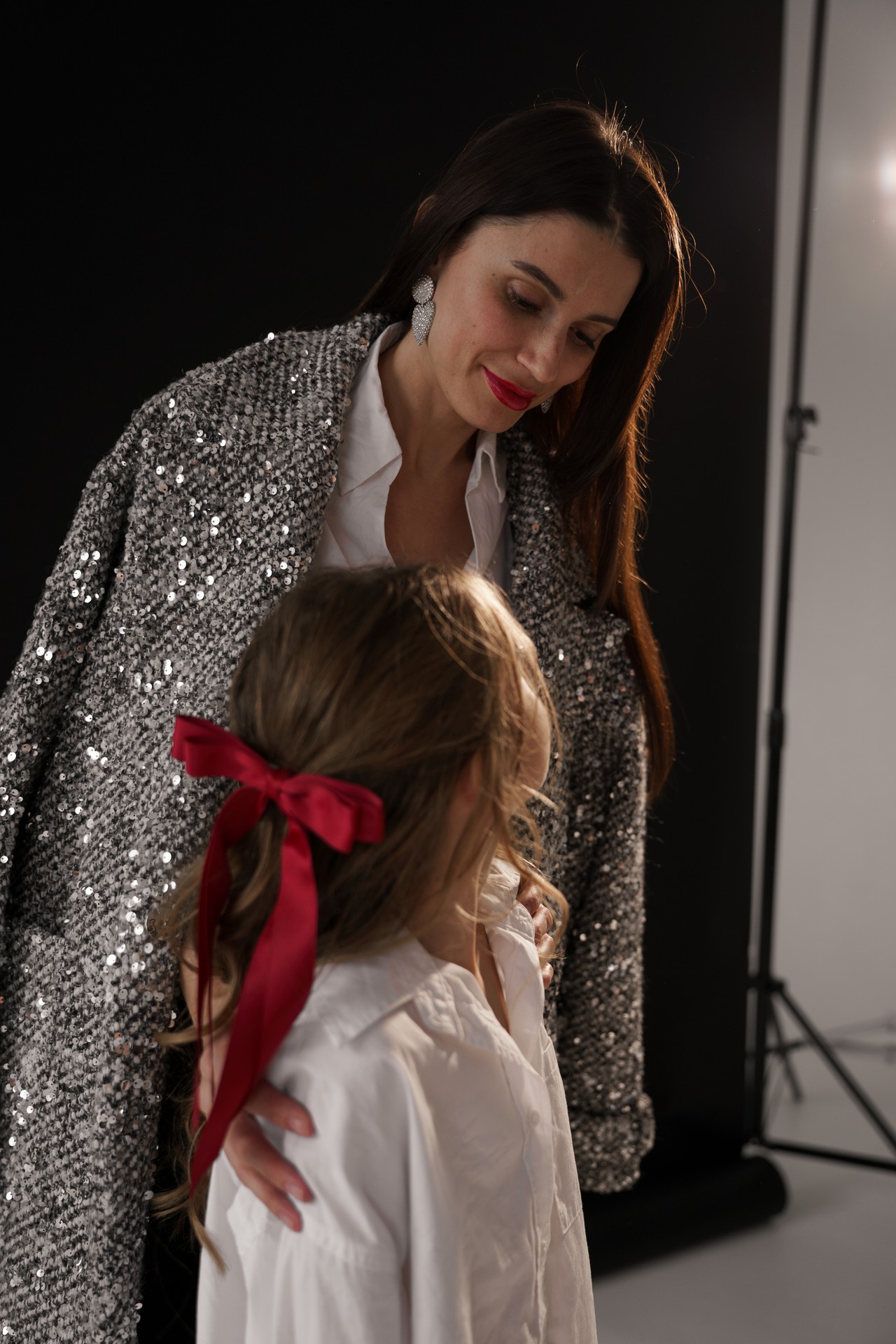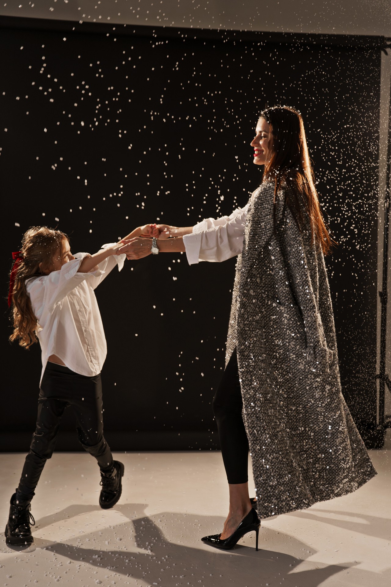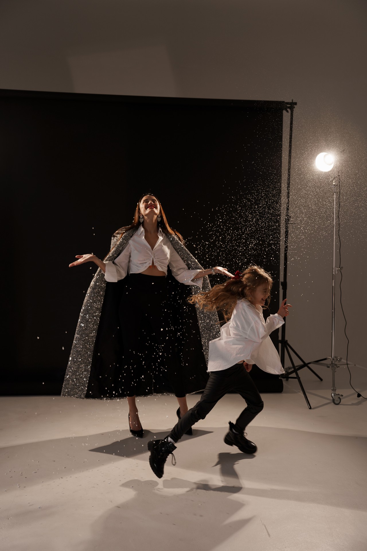 Новогодняя фотосессия мамы и дочки — это момент, наполненный волшебством, когда за кадром остаётся всё лишнее, и остаётся только чистая радость, блеск в глазах и ощущение тепла рядом с самым дорогим человеком. На фоне глубокого черного полотна, под легким пушистым искусственным снегом создаётся настоящая сказка!