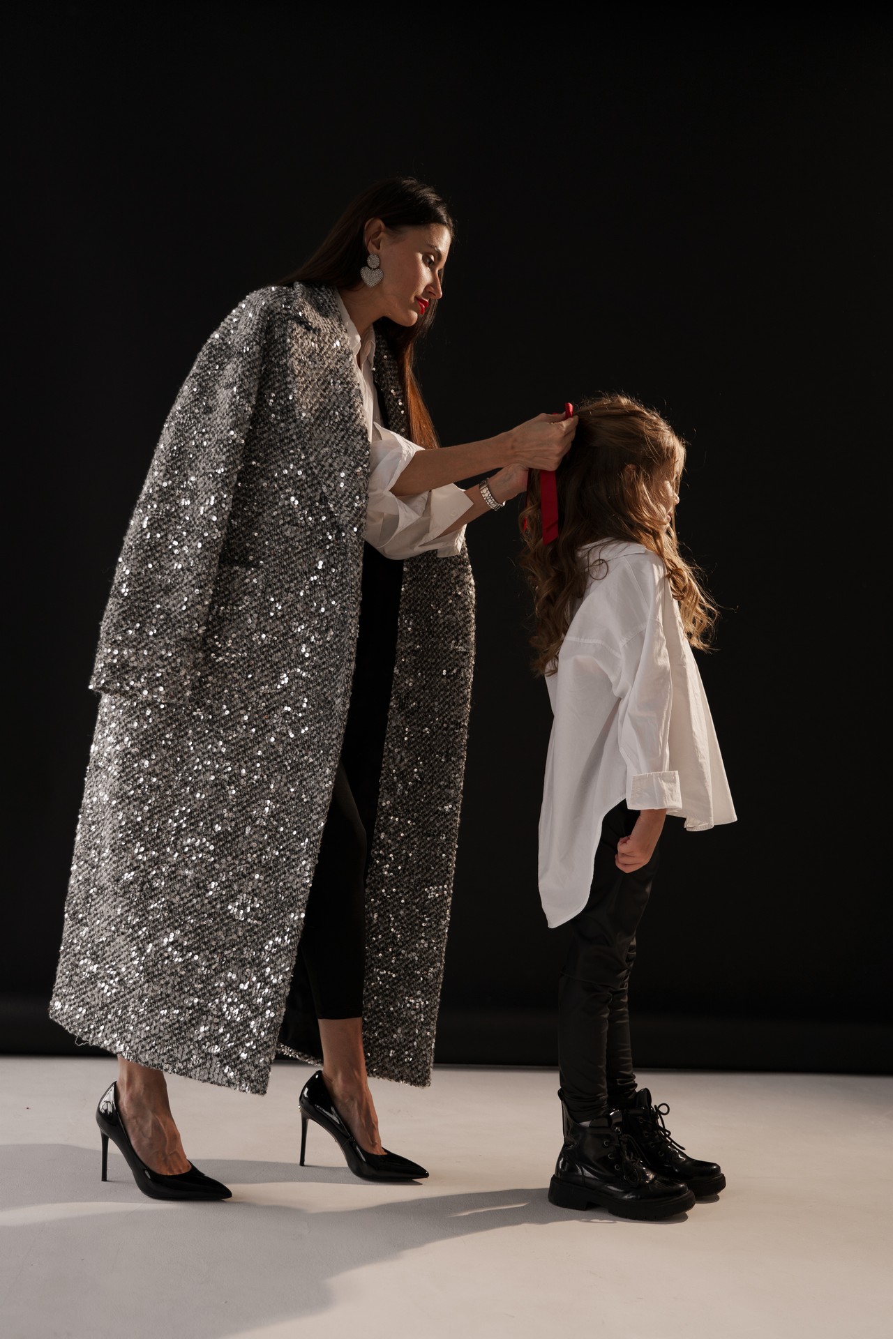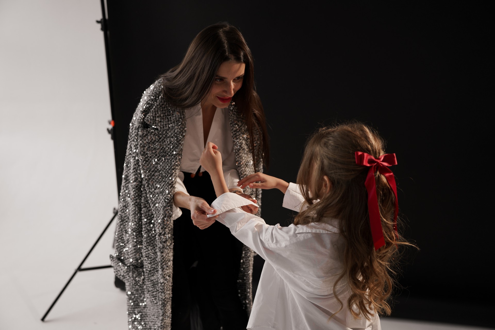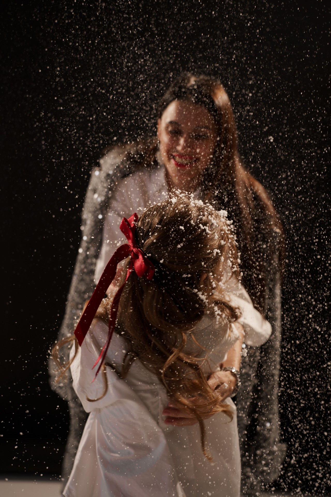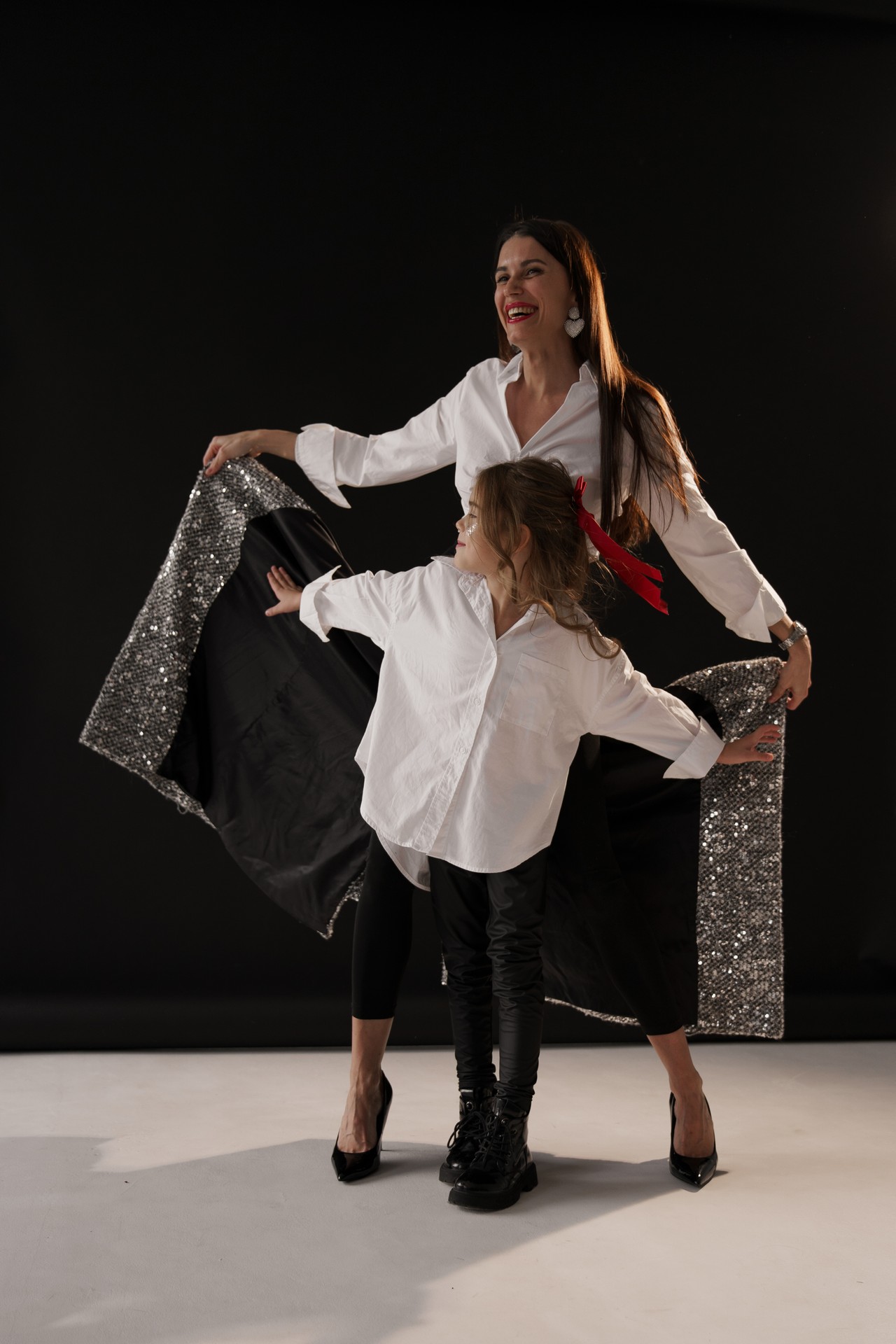 Новогодняя фотосессия мамы и дочки — это момент, наполненный волшебством, когда за кадром остаётся всё лишнее, и остаётся только чистая радость, блеск в глазах и ощущение тепла рядом с самым дорогим человеком. На фоне глубокого черного полотна, под легким пушистым искусственным снегом создаётся настоящая сказка!